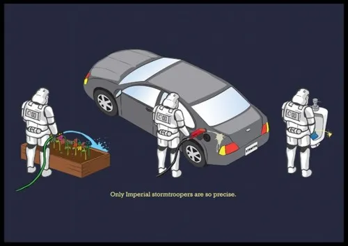 스타워즈 시리즈에 등장하는 은하제국의 병사들인 스톰트루퍼들은 설정상 은하 최고의 엘리트 병사들이다. 하지만 정작 영화에서 이들이 반란군 병사들이나 다른 일반 병력들을 향해 쏘는 블라스터는 정확한 적중률을 보여주지만 유독 주인공들을 향해 쏠 때는 대부분 빗나가기 때문에 붙은 개그성 밈이다. 새로운 희망 초반부에 오비완 캐노비가 "오직 제국의 스톰트루퍼들만이 이토록 정확하게 쏠 수 있지"라는 대사를 한 적이 있는데 이것과 시너지 효과를 일으켜 컬트적인 인기를 얻게 되었다.