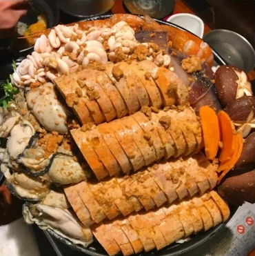 통풍나베(痛風鍋)는 일본 시부야에서 도보 5분 거리인 도겐자카에에 있는 카이리라는 이자카야에서 파는 메뉴로 아귀 간을 비롯해서 굴, 새우, 오징어, 이리 등 푸린이 많이 든 재료들이 잔뜩 들어 있는 나베이다. 물론 육류만 있는 건 아니고, 고기 밑에는 대추와 파, 팽이버섯 등의 6가지 채소가 깔려 있다. 농후한 맛이 일품이라고 하며 먹다 남은 국물에 죽을 추가해서 먹을 수도 있다고 한다.300x250'부연설명 - 정보와 상식' 카테고리의 다른 글