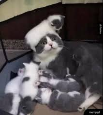 고양이는 의외로 모성애가 강한 동물 중 하나이다. 새끼 고양이를 낳으면 한시도 아기고양이 곁을 떠나지 않고 돌본다. 하루 종일 모유를 먹이고 털을 핥아주며 케어해 주고 식사와 같이 잠시 자리를 비워야 할 때에도 볼일을 마치고 바로 돌아온다. 아기고양이가 조금 더 자라면 놀이 상대가 되어주고 고양이 사회의 중요한 규칙도 가르쳐준다.