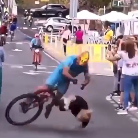 사건은 결승선 근처에서 발생했는데, 한 여성이 휴대전화를 보느라 자신이 자전거 대회 코스로 들어온 줄 모르고 들어왔고 결승전을 앞두고 전력질주하던 선수와 충돌하는 사고가 발생했다. 여성은 앞서 길을 건넌 남성을 따라 눈치를 살피며 경주로로 들어왔다가 달려오던 선수와 그대로 충돌한 것이다.