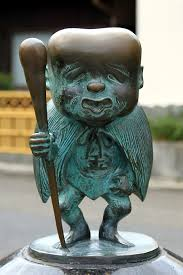 코나키지지. 子泣き爺 (こなきじじい). 노인의 모습을 하고 있으며 아기울음 소리를 낸다. 거리를 두고 보면 갓난아기 처럼 보이는데 산길에 홀로 버려진 척 하며 운다. 이것을 본 행인이 코나키지지를 안고 달래려 하면 자신의 정체를 보인다. 이때 코나키지지는 점점 무거워 지는데다가 내려놓으려 해도 달라붇어 떨어지지 않고 행인은 결국 압사당해 죽는 것이다. 보통 삽화 상에서는 도롱이를 두른 대머리 노인으로 그려진다.