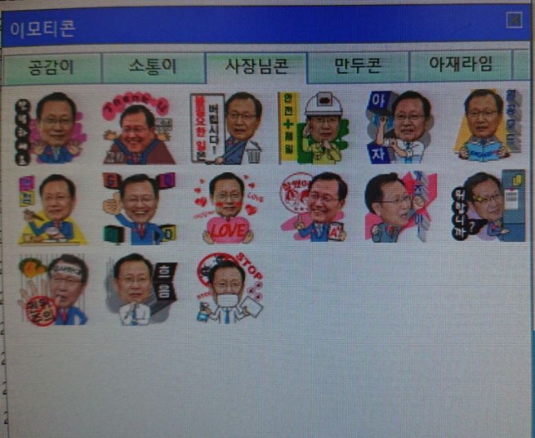 한전이 2010년대 후반 신입사원을 대폭 채용하면서 구성원 연령대가 많이 젊어짐. 2020년 기준 40%가 밀레니얼 세대(1980년대 초~2000년대 초 출생한 세대)가 차지함. 그래서 사기업보다 경직되고 권위적인 문화를 지닌 공기업의 이미지를 벗고 기업문화를 수평적으로 바꾸기 위해 내부적으로 노력하던 와중에 나온 일이라고 함. 저 사장님 얼굴 이모티콘도 예쁘게 리디자인해서 "CEO콘"으로 내놓음.(심지어 보도자료도 냄) 저 모델이 당시 김종갑 대표이사였는데 아마 2021년에 임기 마치고 퇴임했으니 저 아이콘도 아마 지금은 없어졌을 것으로 보임.