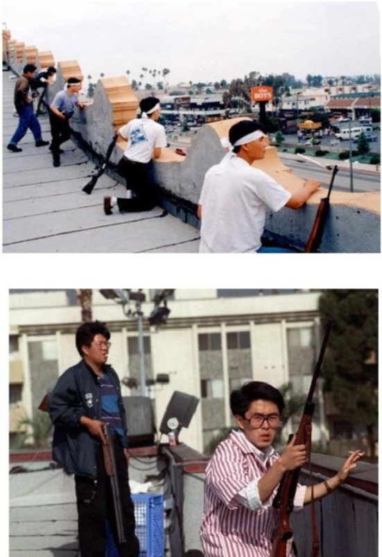 LA 폭동 당시 한인타운의 피해는 정말 극심했는데 총 약탈당하거나 전소된 한인업소가 2,300여 개, 재산 피해액이 4억 달러에 달했음. 4월 29일부터 5월 4일까지 벌어진 폭동으로 사망자 53명 부상자 4천 명의 인명피해가 났으며, 미 경찰들은 백인 주요 거주지역인 웨스트우드나 비버리힐스 쪽에는 경찰병력을 배치했으나 흑인가 사이에 낀 한인타운에는 경찰 배치에 소극적이었음. 즉, 한인타운을 완충지대로 삼았음.