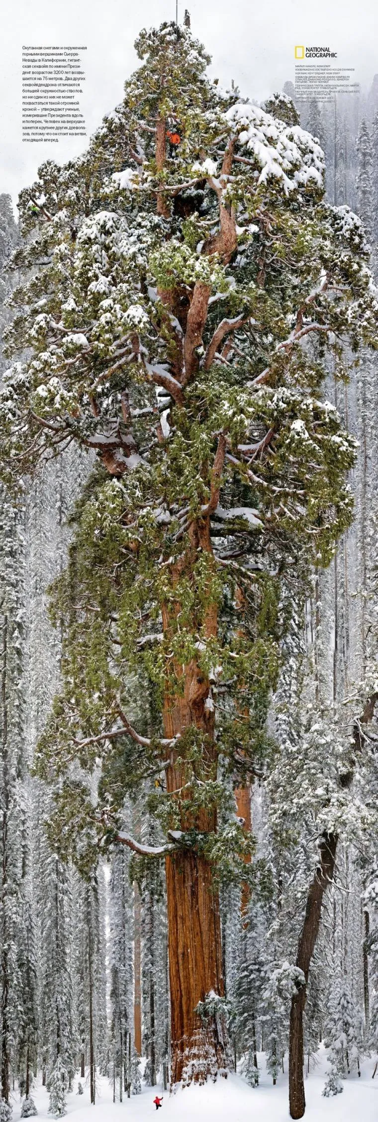 미국 시에라 네바다 산맥에서 발견되어 내셔널지오그래픽 2012년 12월호에 소개된 이 나무는 '프레지던트'라는 이름의 자이언트 세퀘이아 나무이다. 수령 3,200년, 키 247피트(75m)에 달하는 이 나무는 나뭇잎만 20억 개가 달려 있는 것으로 알려졌는데 아직도 자라고 있다고 한다. 이 나무의 사진을 찍기 위해 무려 사진 126장을 붙여서 만들었다.
